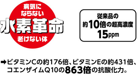 水素水の素がとくに優れているのは、その「活性酸素消去力」と「持続力」そして「吸収力」です。15ppmという大量の水素が含まれています。宇宙最小の元素(1ナノ)である水素は細胞膜を簡単に通過し、細胞の中、核、脳内の「血液脳関門」を通過でき、脳の神経細胞を「悪玉活性酸素」から守ることができる優れた特性をもっています。
